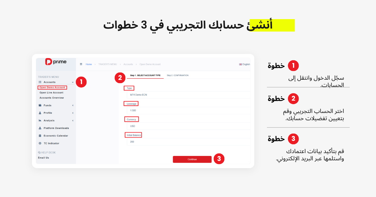 البدء في استخدام حساب التداول التجريبي في D Prime أمر بسيط ومباشر: