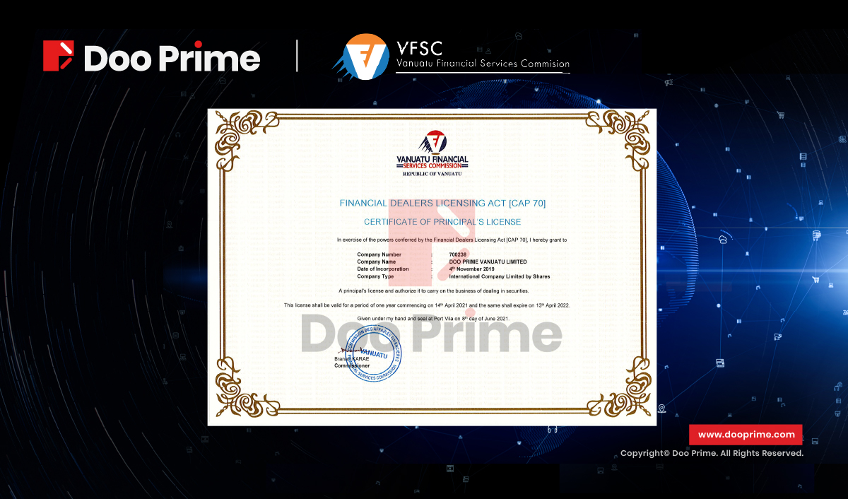 Doo Prime is pleased to announce that Doo Prime Vanuatu Limited has successfully renewed its financial dealers license from the Vanuatu Financial Services Commission (“VFSC”). In doing so, Doo Prime will continue to expand international relations, and seize the global financial market.