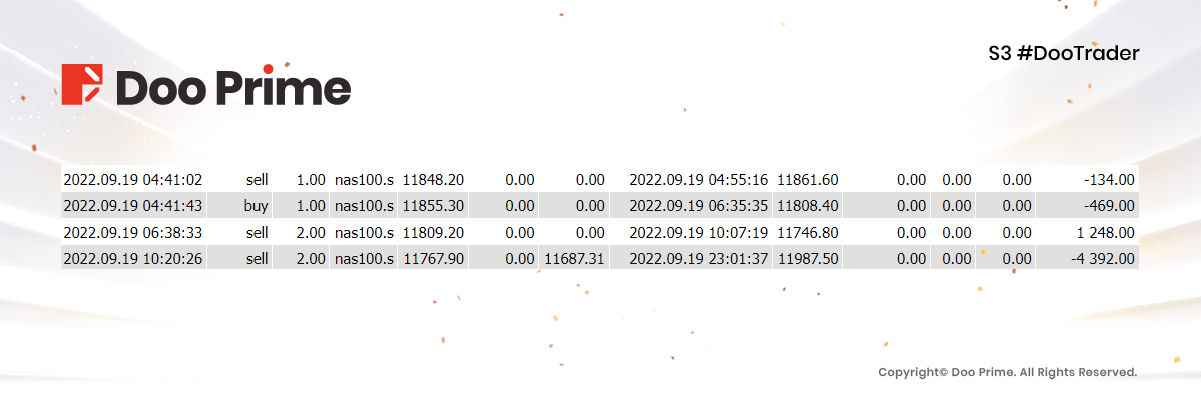 Normally, traders would reduce their positions and take a risk at this point in time, in order to stabilize and rebound. But this player did not choose to correct his trading system, and instead continued to trade the NAS100 with a 2-lot position, and gradually turned his losses into profits.