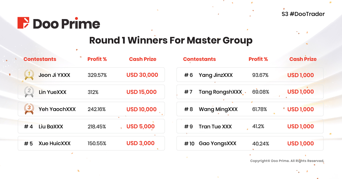 We would like to congratulate all the winners of the first round and look forward to the next round of the competition to witness the birth of a master trader!