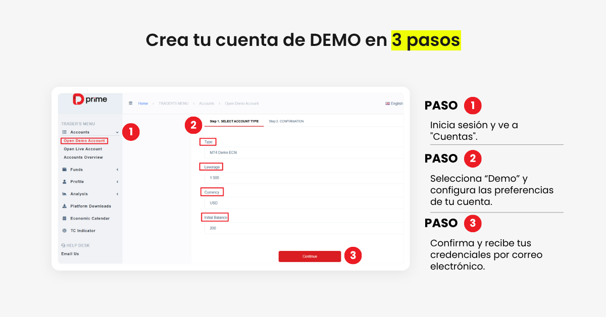 Abrir una cuenta demo en D Prime es sencillo y directo: