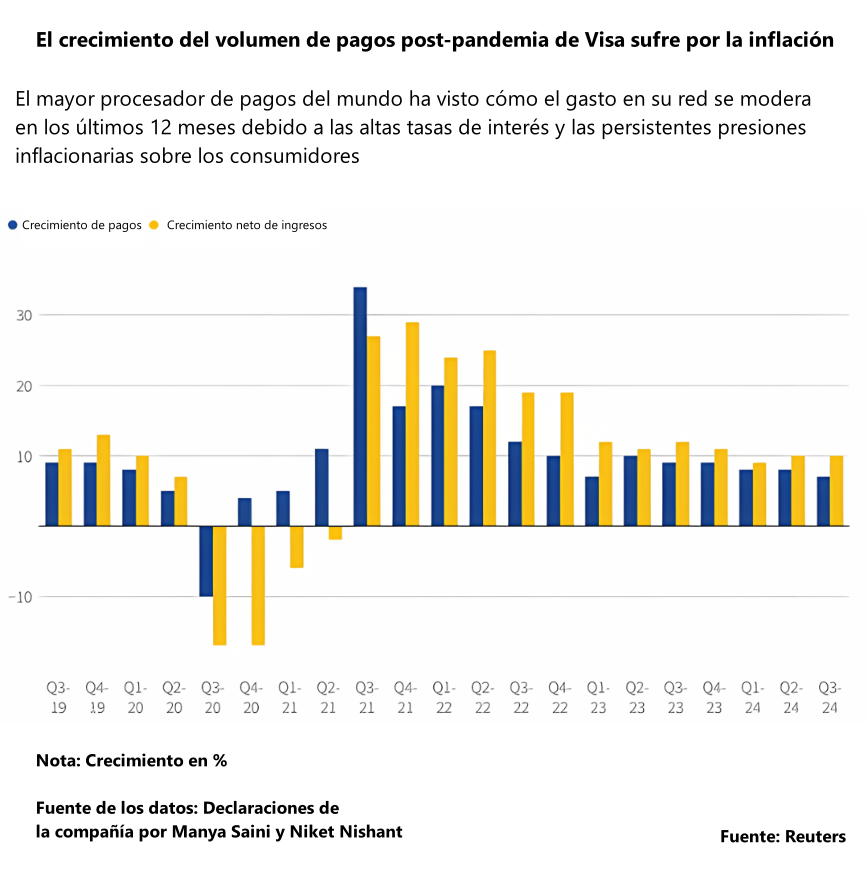 El crecimiento del volumen de Visa después de la pandemia sufre un golpe por la inflación.
