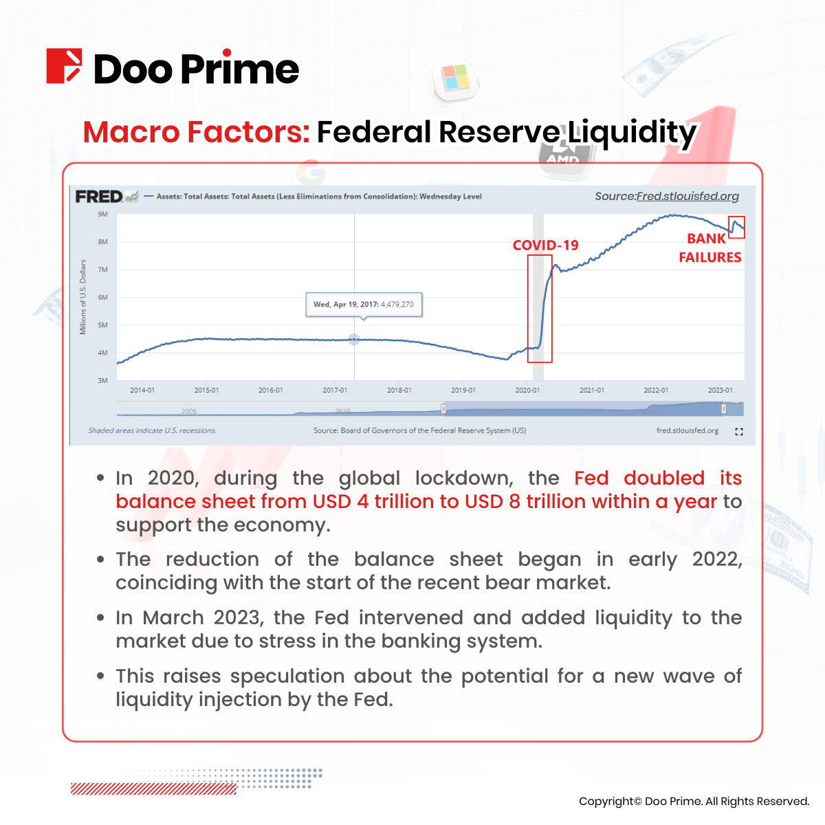 Another potential bullish signal for growth stocks emerges from the actions of the U.S. Federal Reserve. Despite the current tightening policy, the Federal Reserve recently injected a new round of liquidity into the market following three bank failures in the United States (First Republic Bank, Signature Bank, and Silicon Valley Bank).