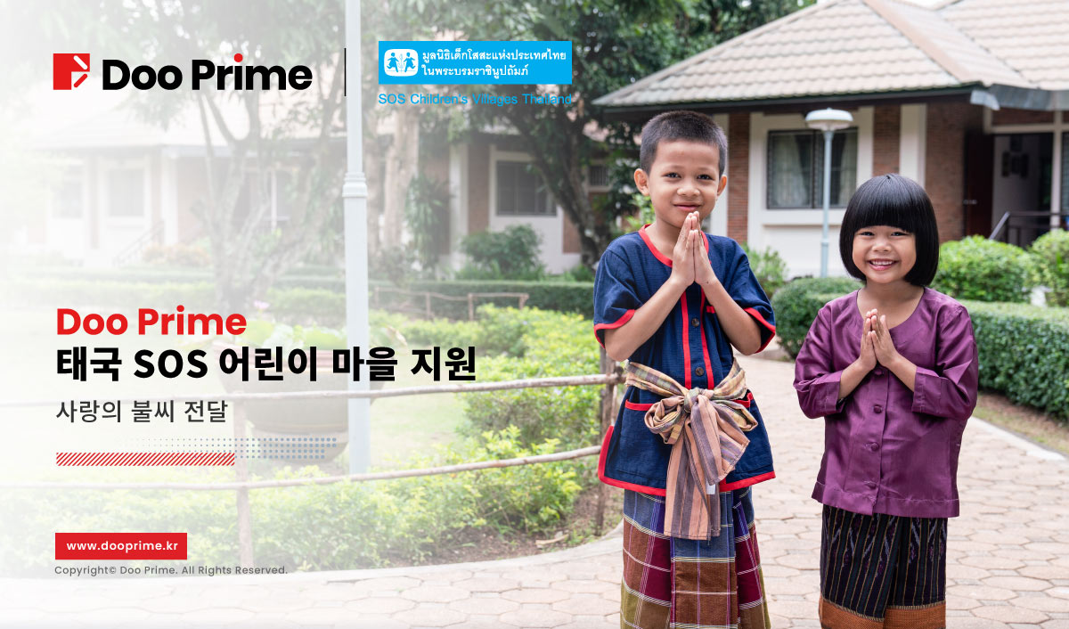 Doo Prime은 2021년 태국으로 사업을 확장해 세계 많은 투자자들에게 거래의 문은 열어주는 한편, 초심을 잃지 않고 자선사업을 지속하고 있다. 이에 Doo Prime은 태국 SOS어린이 마을과 자선협력을 약속하며 고아 어린이들에게 따뜻함과 축복을 선사했다.
