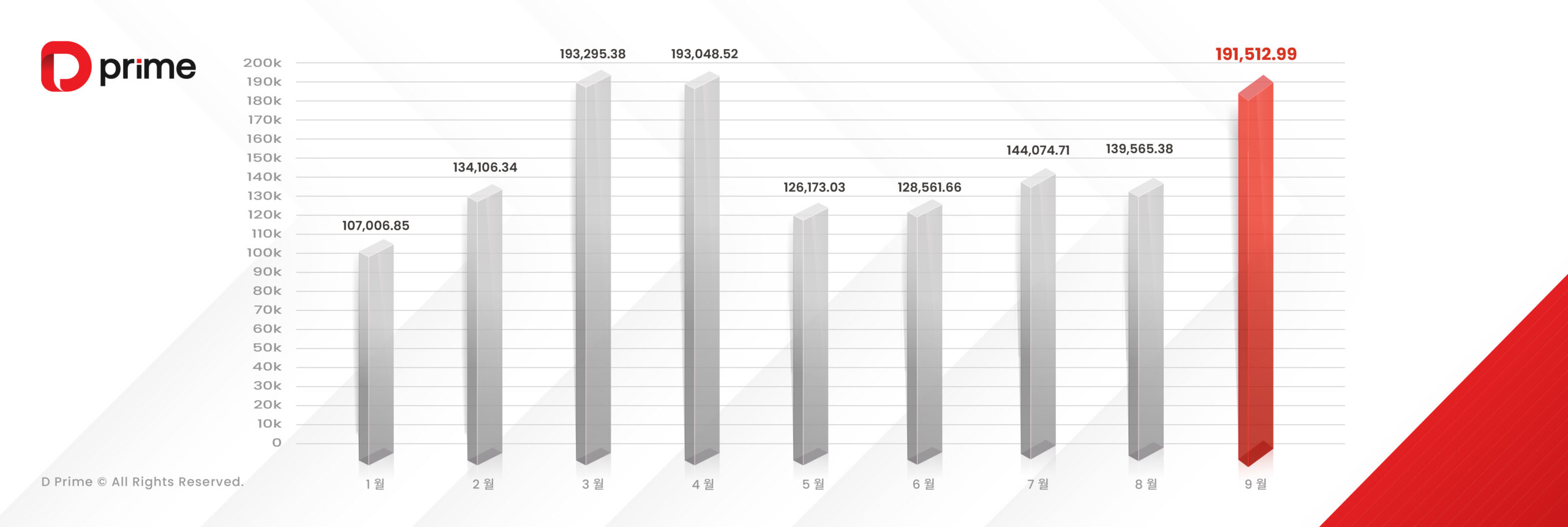 복잡하고 빠르게 변하는 시장 환경 속에서도 D Prime은 전문적이고 안정적인 서비스를 통해 사용자들의 의사결정을 지원하며 거래 기회 포착을 돕고 있습니다. 그 결과 9월 플랫폼 거래량은 전년 동기 대비 48.85% 증가하며 변동성 높은 시장에서도 D Prime의 서비스 역량과 고객 신뢰를 다시 한 번 입증했습니다.