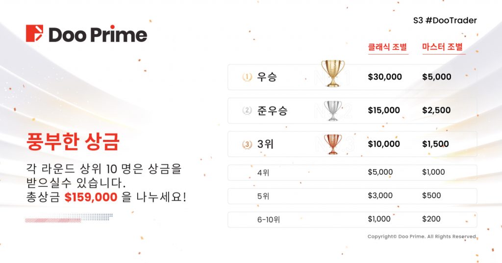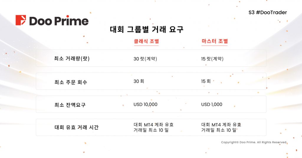 제3회 S3 #DooTrader는 지난 대회에 이어 “클래식”과 ”마스터” 두가지 조별로 나뉘어 진행됩니다.