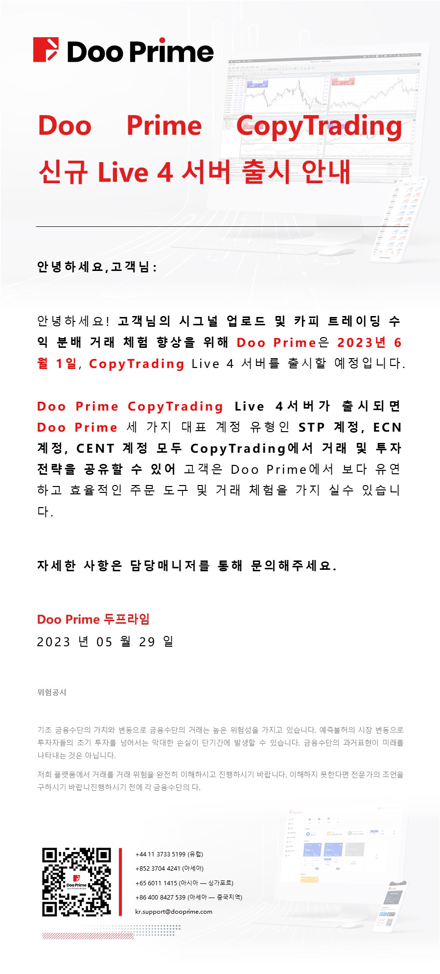 Doo Prime CopyTrading ​신규 Live 4 서버 출시 안내​
