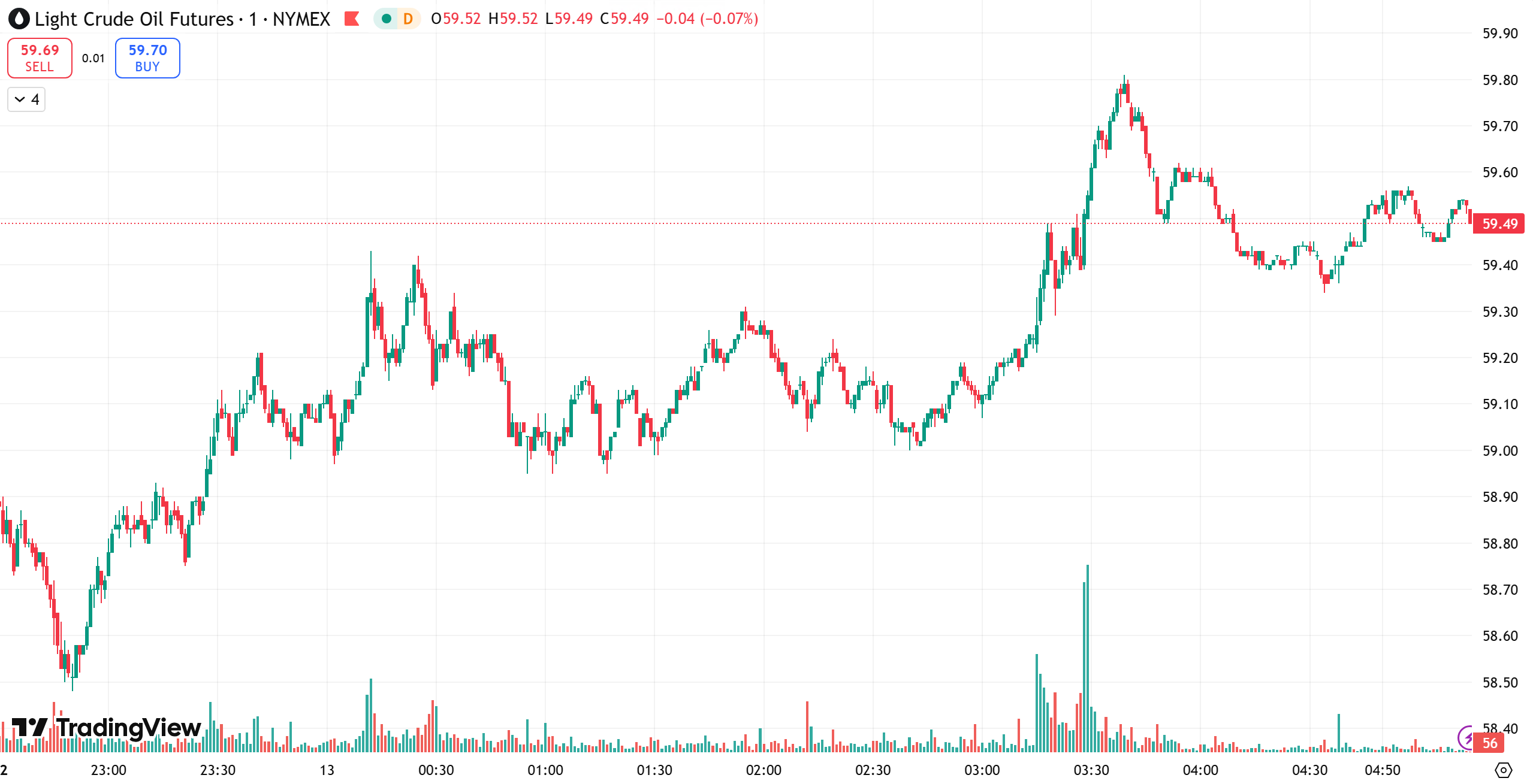 Meanwhile, WTI crude traded near $59.71 per barrel, after climbing to a seven-week high as President Trump increased pressure on Iran, raising concerns that Iranian oil exports could be disrupted.
