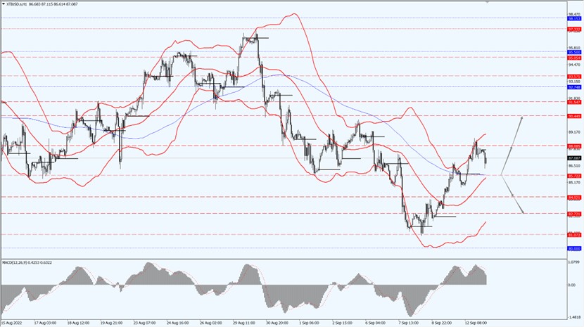 - 如果油价运行于 85.72 一线上方,届时则关注 88.08 和 90.44 两个位置的压制力度。
