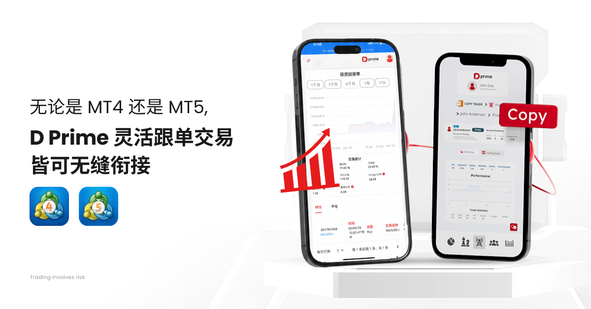 无论您偏好熟悉的 MT4 还是功能更先进的 MT5,D Prime 都能确保您在两个平台上获得流畅的跟单交易体验。