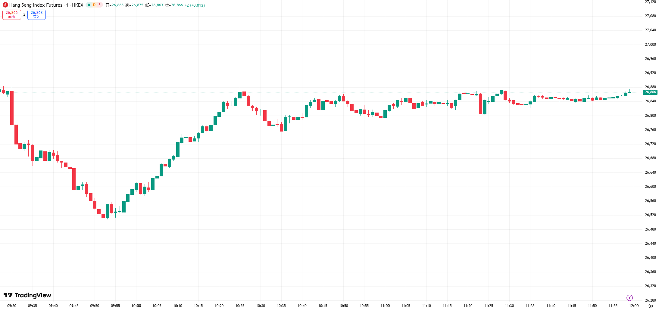 港股三大指数集体上涨。截至午间收盘,科网股涨多跌少,联想集团涨超 6%,哔哩哔哩涨超 2%;航运及港口股活跃,太平洋航运涨超 2%;风电股走高,金风科技涨近 9%;高铁基建股大涨,中国中铁涨超 9%;消费电子产品早盘持续下跌,万威国际跌超 11%。