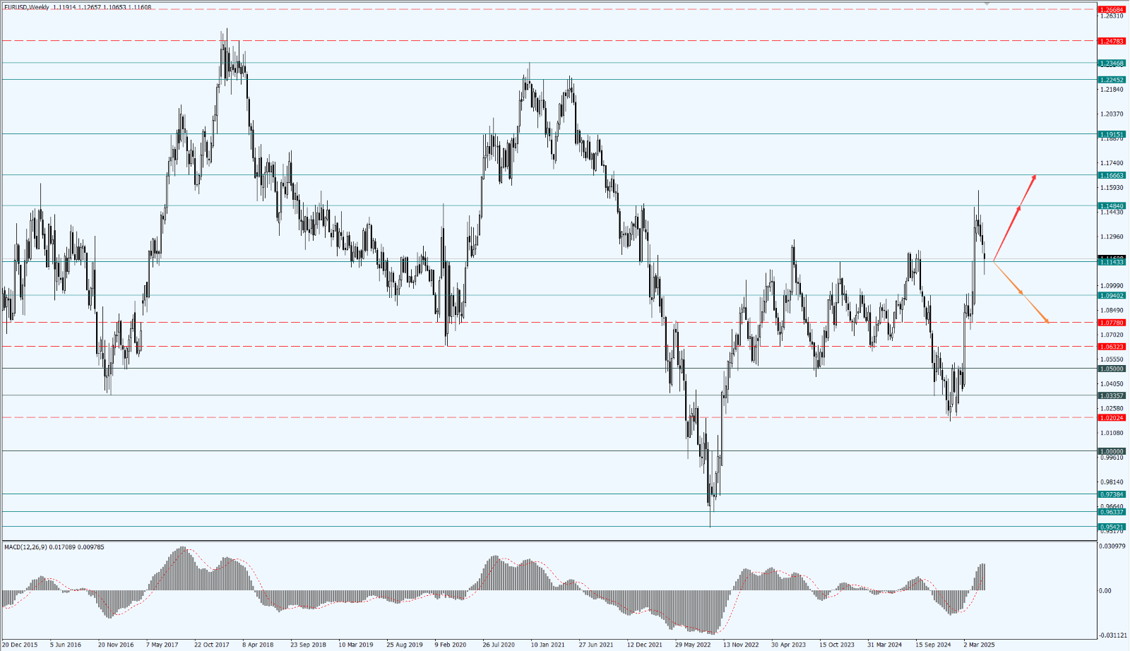 - 如果欧元兑美元运行于 1.1143 一线上方,则关注欧元兑美元随后的反弹力度,届时依次关注 1.1484 和 1.1666 两个位置的压制力度;