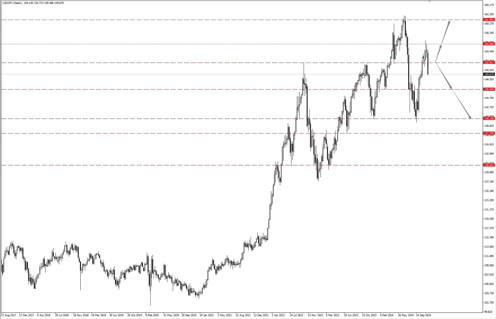 - 如果美日稳定运行于 152.05 一线下方,则依次关注 146.44 和 140.33 两个位置的支撑力度;