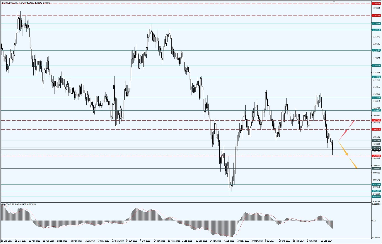 上周,欧元兑美元触及 26 个月以来的低点,跌幅接近 1.2%,欧元区经济前景依然不明朗,尤其是受欧洲央行可能比美联储更大幅降息的预期影响,将很可能致使欧元的跌势持续。法国的预算战和德国大选等不确定因素也加剧了市场对欧元的担忧。