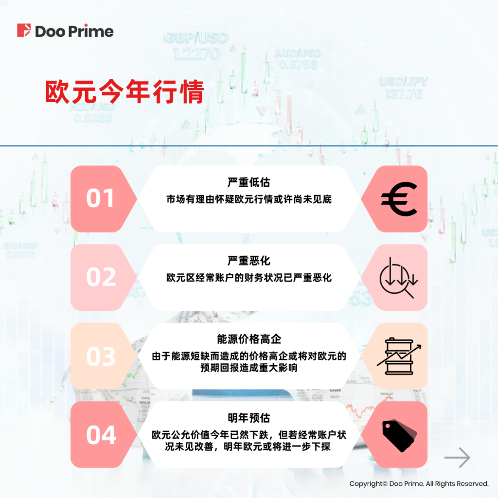 目前市场上有大宗商品分析师预计,欧元区明年仍将面临天然气短缺以及价格高企,进口价格亦将随之走高。因此,业内人士预计,尽管欧元的公允价值今年已然下跌,但如果经常账户的状况未见改善,明年欧元或将进一步下探。