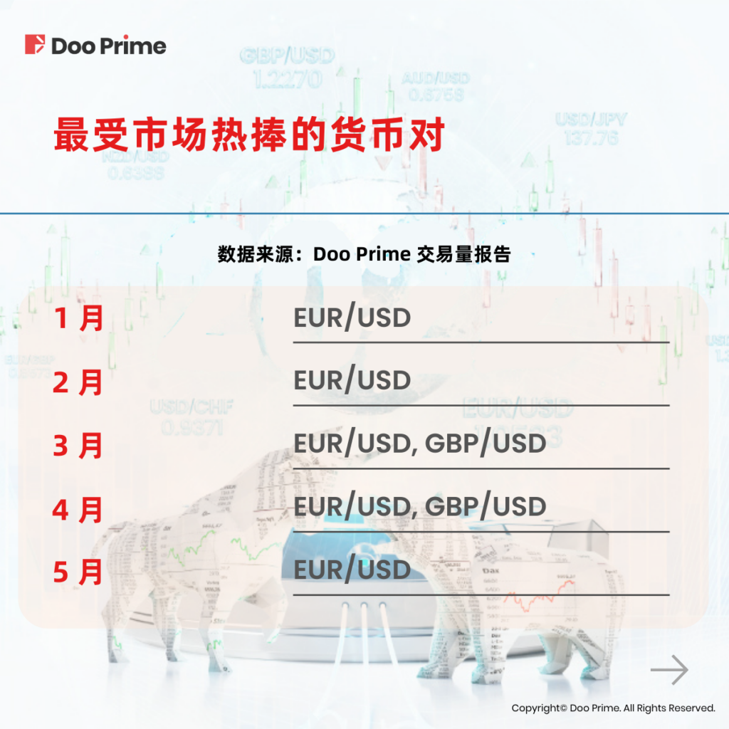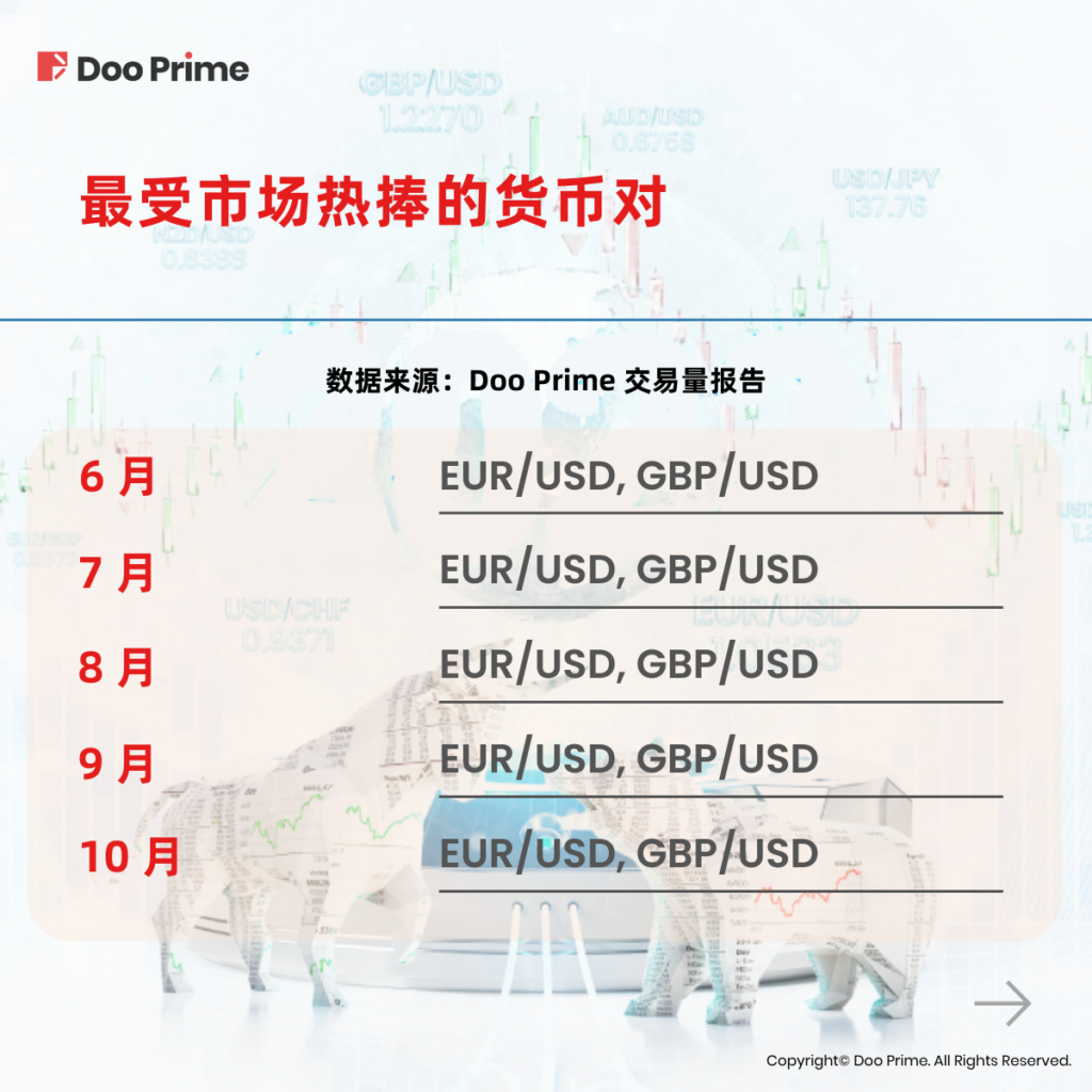 根据 Doo Prime 的交易量报告,下表为 2022 年最受市场热捧的货币对。通过该图我们可知,美元兑欧元和英镑等其他主要国家货币的交易品种最受市场青睐。