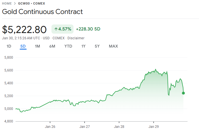 国际金价周四大幅下挫,从每盎司 5,500 美元上方的历史高位急剧回落,创下自去年 10 月以来最大单日跌幅。避险情绪高涨下,投资者为弥补股票等风险资产的损失而抛售黄金与白银等贵金属,市场出现集中获利了结。