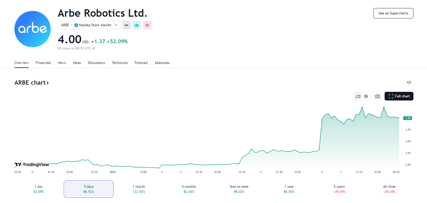 Arbe Robotics 宣布与英伟达合作,股价暴涨逾 50%