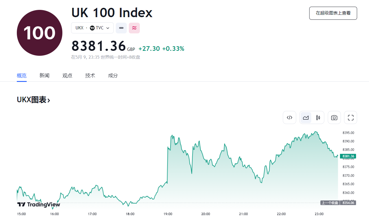 此外,盘中英国股指涨幅扩大,连续第五日收创历史新高,英国富时 100 指数短线拉升,涨幅扩大至 0.4%。