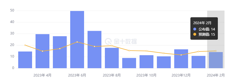 有“小非农”之称的美国 ADP 就业报告显示,2 月就业人数 14 万人,不及预期的 15 万人,但超出修正后前值 11.1 万人,创 2023 年 12 月来最大增幅。
