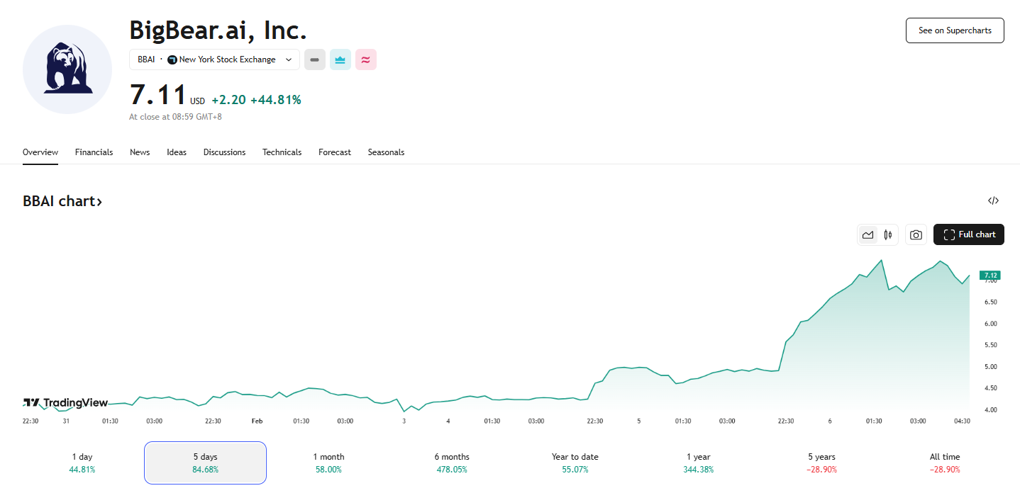 BigBear 获美国国防部合同,股价大涨近 45% 创三年新高