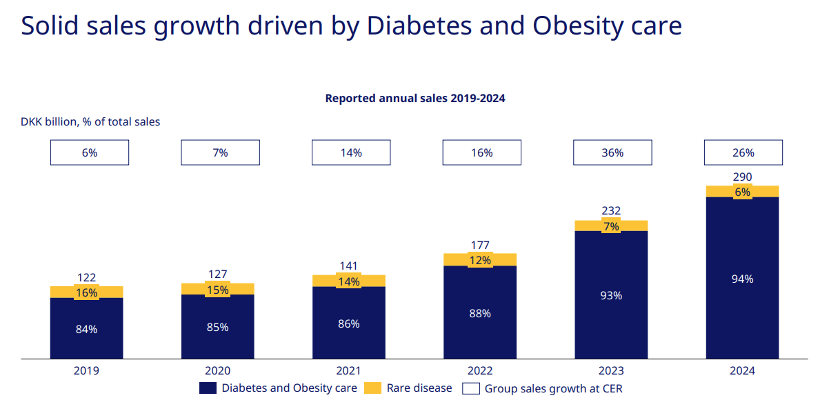 - 总销售额增长 30%,其中 Wegovy 第四季度销售额同比增长了 107% 至 199 亿克朗,符合预期,超过第三季度的 173 亿克朗;