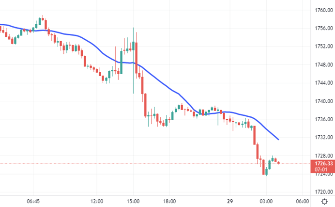 周一( 8 月 29 日)亚市盘初,现货黄金震荡走弱,延续上周五跌势,一度创近一个月新低至 1725.96 美元/盎司,上周五美联储主席鲍威尔称在通胀受控前美联储不会逆转立场,强化了市场对 9 月份加息 75 个基点的预期,帮助美元指数扭跌为涨,周一进一步刷新逾 20 年高点至 109.31,这对金价打压明显。