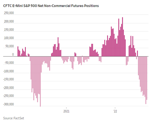 过去几周,标普 500 指数的做空头寸有所增加,根据商品期货交易委员会(CFTC)的数据,截止上周二,标普 500 指数期货净空头头寸增加至 26 万份,接近 2020 年 6 月的高点。这意味着交易者正在加大对美股下跌的赌注。与此同时,机构投资者对热门科技股的做空兴趣开始上升,近期科技股下跌表明,夏季强劲的涨势正在停滞。