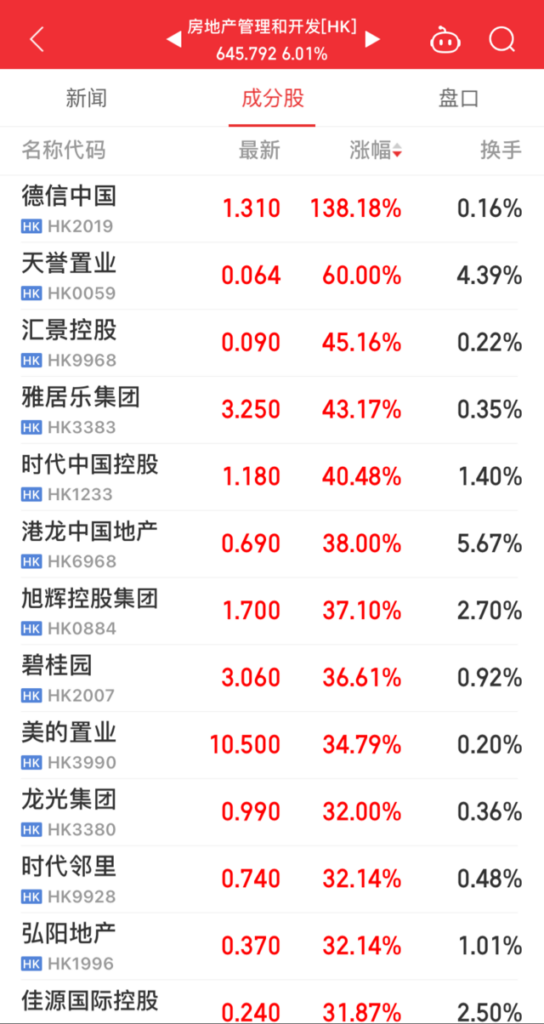 16 条政策提振地产股,德信涨超138%