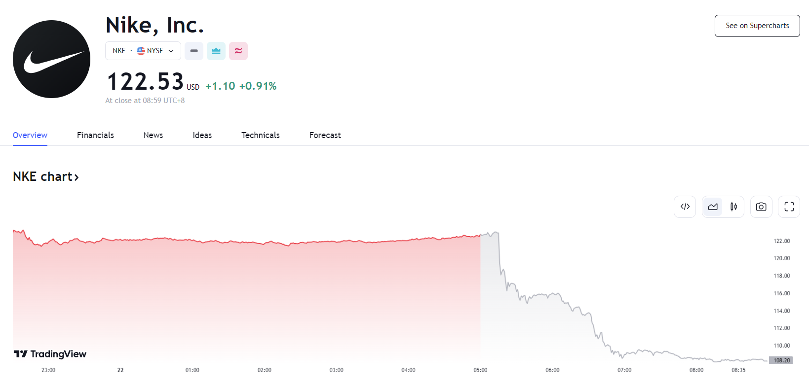 财报发布后,耐克股价一度重挫 11.53%;依赖耐克产品的零售商 Foot Locker 盘后跌约 7%。