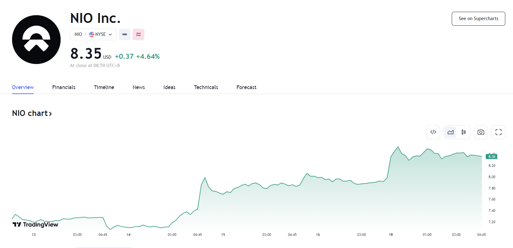 蔚来既开源也节流,消息公布后,蔚来美股盘前涨超 10%,最终收涨 4.64%,报 8.35 美元。
