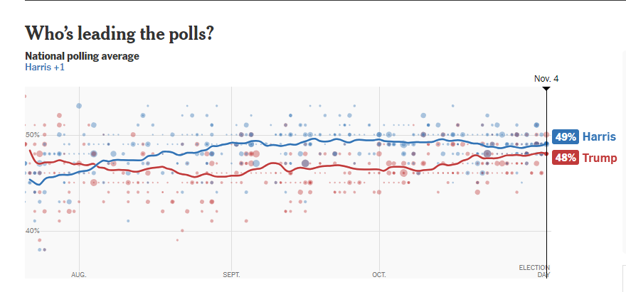 此次美国迎来史上最具悬念的大选,目前的选情依然异常激烈,民主党候选人——卡玛拉·哈里斯和共和党候选人——唐纳德·特朗普的民调支持率非常接近。