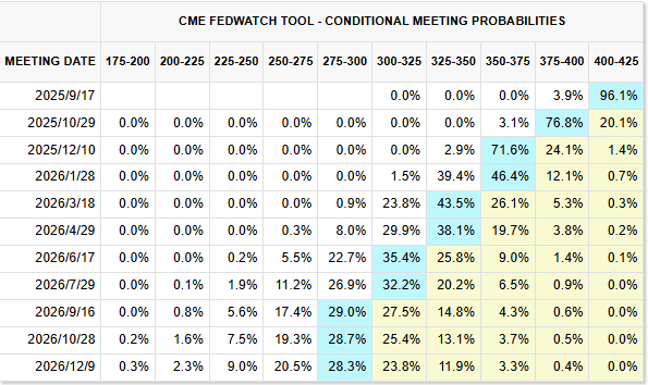 SOFR 期权市场显示,12 月合约需求上升,交易策略覆盖至多 两次 0.5% 或三次 0.25% 的降息情境。同时,期货市场还出现了史上规模最大的联邦基金期货区块交易,凸显投资人加大避险力度。