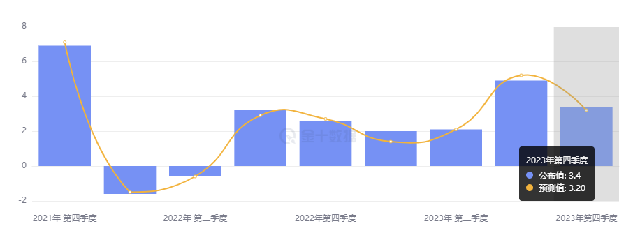 美国商务部公布了第四季度 GDP 年化季环比终值,环比终值超预期上修至 3.4%,前值为 3.2%。