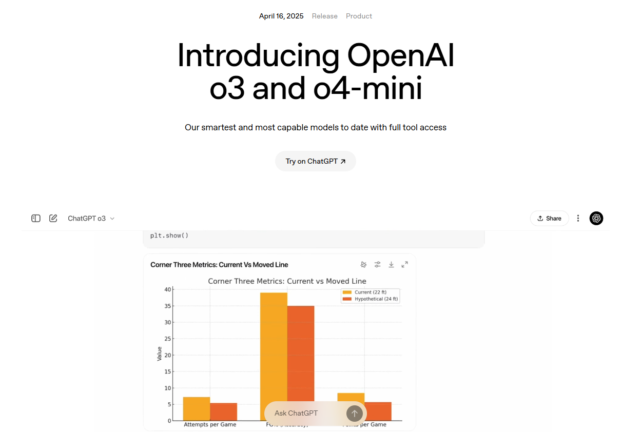 OpenAI 发新模型 o3 和 o4-mini,可使用所有 ChatGPT 工具