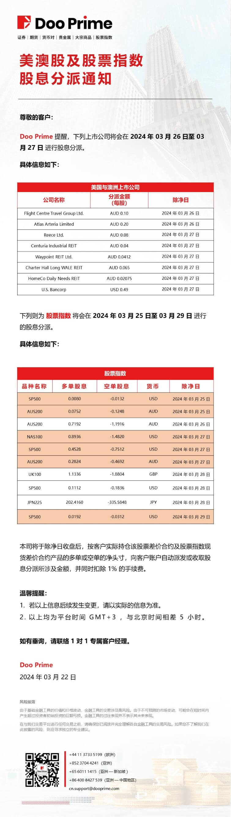Doo Prime 美澳股及股票指数​股息分派通知