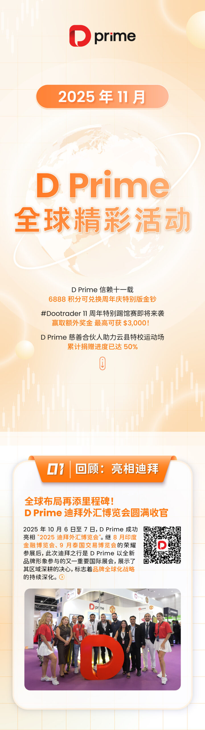 D Prime 作为行业领先的互联网券商平台,旨在为专业投资者提供全球证券、期货、货币对、贵金属、大宗商品和股票指数的差价合约交易产品,目前已为超过 520,000 个专业客户提供优质的交易经纪服务,日交易订单达 430,000+。