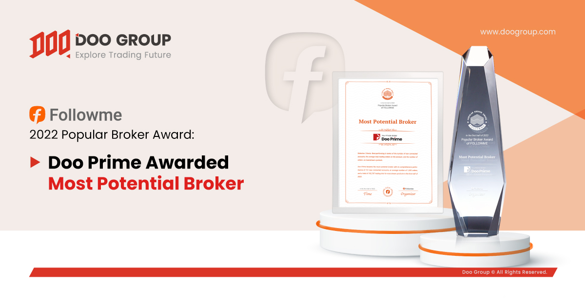 In the first half of 2022, Doo Prime is recognized and awarded as the “Most Potential Broker” and “Top 10 Popular Broker” by FOLLOWME. For the “Most Potential Broker” award, FOLLOWME measures the number of new connected accounts, the average number of trading orders in the account, and the lots of major trading products traded in the accounts during the first half of 2022, which are the main criteria for selecting the best brokers in the first half of the year.