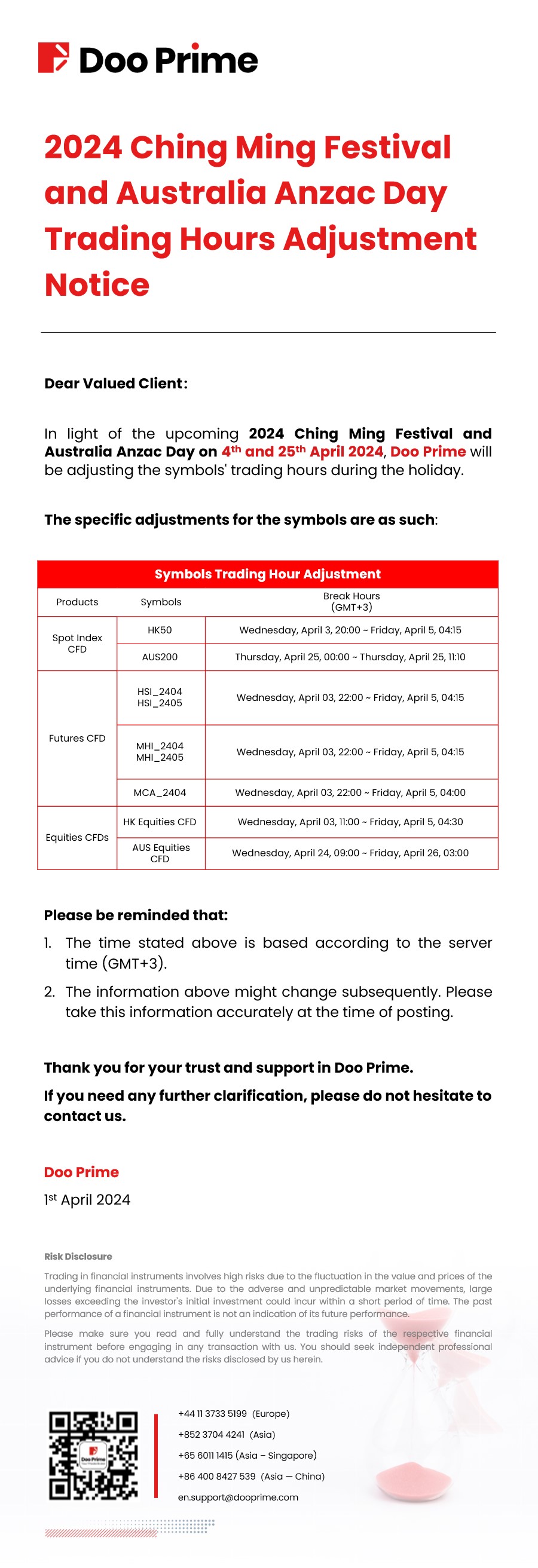 2024-04-01 | Holiday Hours , Trading Hours Adjustment