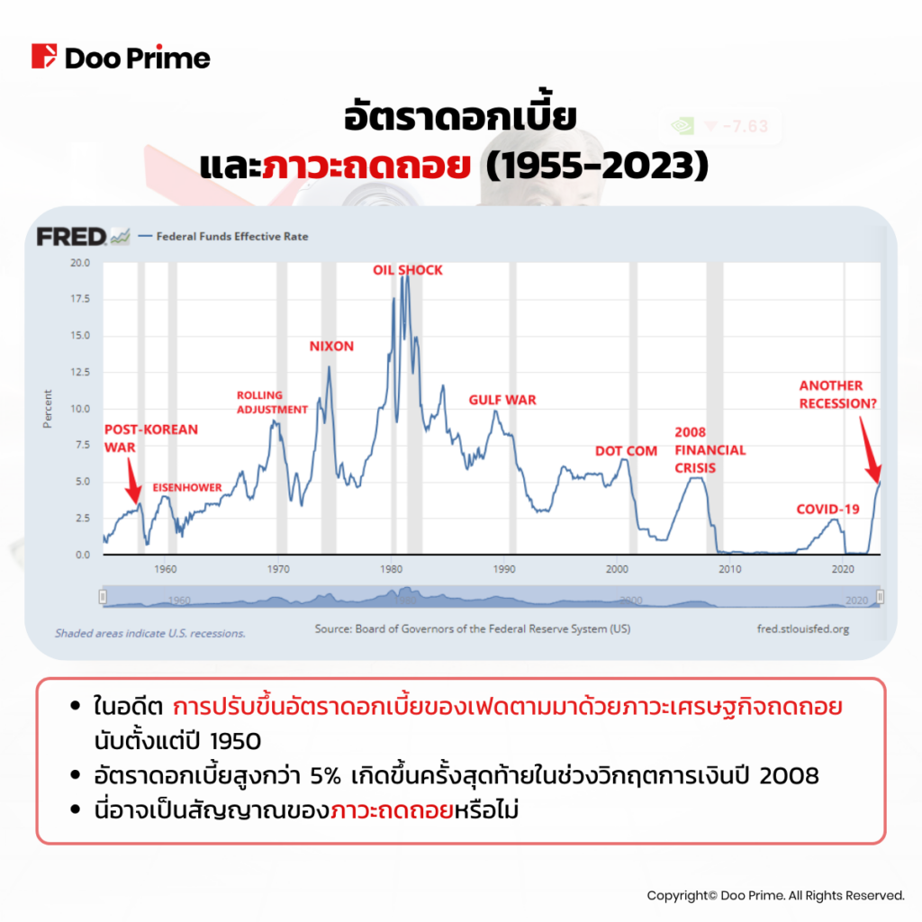 ในสภาพแวดล้อมปัจจุบันนี้ เฟดยังคงดำเนินนโยบายการเงินอย่างเข้มงวดเพื่อต่อสู้กับภาวะเงินเฟ้อ อย่างไรก็ตาม ข้อเสียของอัตราดอกเบี้ยที่สูงขึ้นคืออาจนำไปสู่การชะลอตัวของเศรษฐกิจ การลดลงของราคาสินทรัพย์เสี่ยง เช่น หุ้น และก่อให้เกิดความเสี่ยงเชิงระบบต่อภาคธนาคาร