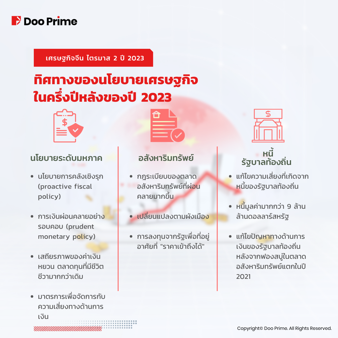 ภายหลังการประชุมของพรรคคอมมิวนิสต์ ประเทศจีนได้เปิดเผยทิศทางนโยบายเศรษฐกิจในช่วงครึ่งหลังของปี 2023 โดยมีเป้าหมายเพื่อจัดการกับปัญหาที่เกิดขึ้น