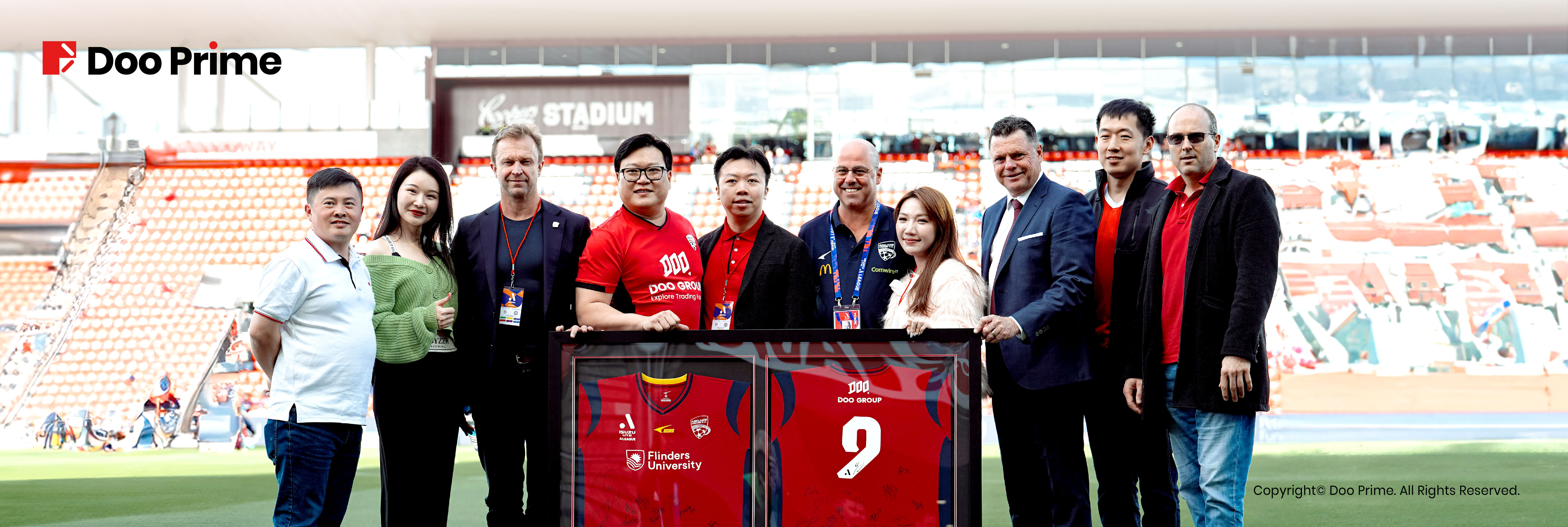 เพื่อเฉลิมฉลองความร่วมมือครั้งนี้ Doo Group และ AUFC ได้เริ่มกิจกรรมเปิดตัว Gold Global Partnership โอกาสสำคัญดังกล่าวประกอบด้วยกิจกรรมต่างๆ มากมาย รวมถึงการเที่ยวชมเมืองแอดิเลด การประชุมพาร์ทเนอร์ ทัวร์สนามกีฬา การแลกเปลี่ยนเสื้อพร้อมลายเซ็น และชมการแข่งขันวีไอพีสำหรับแขกรับเชิญของ Doo Group ทุกคน ไฮไลท์ที่สำคัญที่สุดคือเซสชั่นการโยนเหรียญ ซึ่งวินด์สัน ชาน ซีอีโอของเรา เป็นตัวแทนของ Doo Group ที่สนาม Coopers Stadium สำหรับเกม Isuzu UTE A-League Men ที่จัดขึ้นเมื่อวันที่ 29 ตุลาคม 2566