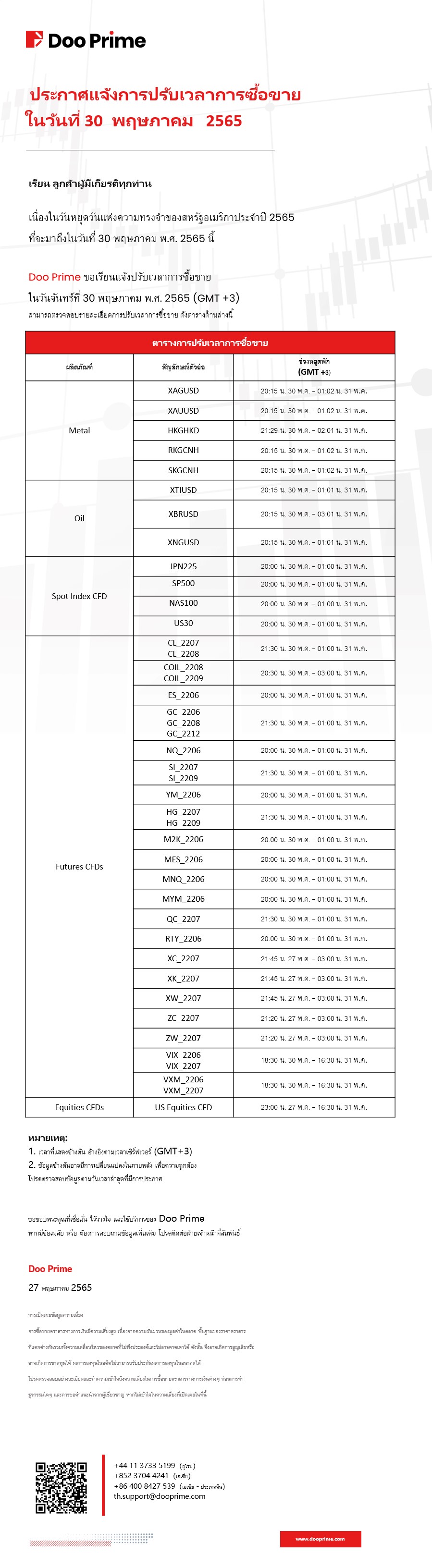 2022-05-27 | ประกาศ , แจ้งปรับเวลา