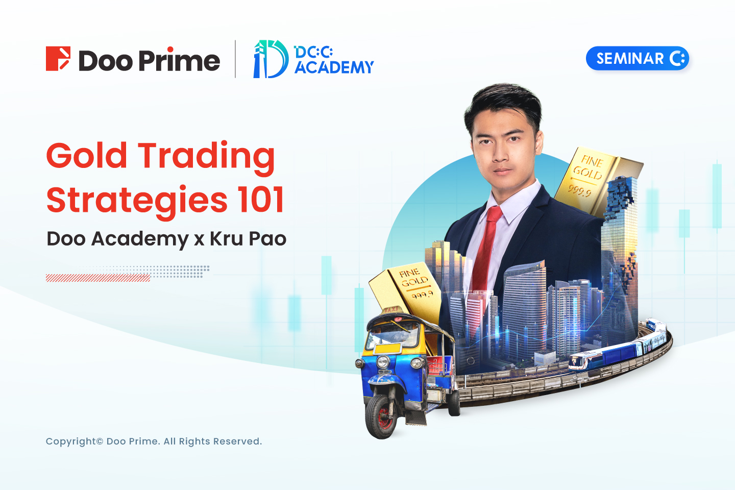 งานสัมมนา “เทรดทองรายวัน ไม่สนข่าว” ในสัมมนานี้นักลงทุนสามารถรับความรู้ในด้านความสำคัญของทองคำ ว่าทำไมทองคำถือเป็นหนึ่งในสินทรัพย์ที่ปลอดภัยและสามารถป้องกันความเสี่ยงจากเงินเฟ้อและสภาวะความเสี่ยงที่จะมีสงครามได้ ซึ่งการเทรดอย่างเป็นระบบถือเป็นปัจจัยที่สำคัญเพื่อการเทรดที่ยั่งยืน เพราะถ้านักลงทุนมีระบบการเทรดที่ดี มั่นคง และ ไม่เสี่ยงมากเกินไป การทำกำไรแบบยั่งยืนก็ไม่ยากอย่างที่หลายคนคิด