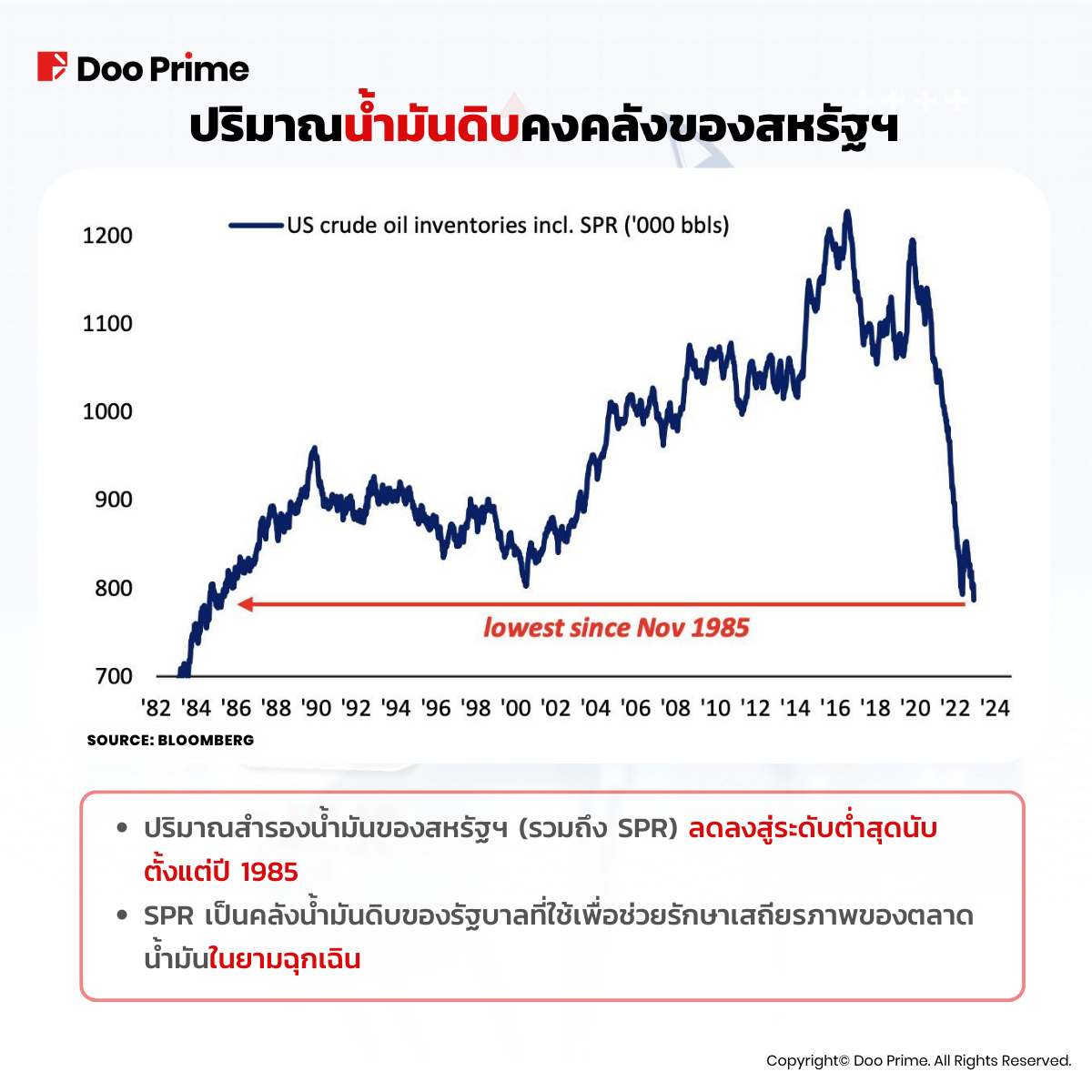 น้ำมัน SPR กำลังหมดลงทุกวัน ราคาน้ำมันที่สูงขึ้นมีส่วนสำคัญต่ออัตราเงินเฟ้อ ซึ่งธนาคารกลางสหรัฐต่อสู้มานานถึง 2 ปีแล้ว หาก OPEC+ และรัสเซียยังคงลดการผลิตน้ำมัน มันจะกดดันให้คลังน้ำมันลดลงและอุปสงค์มีแนวโน้มเพิ่มขึ้น ซึ่งอาจส่งผลให้ราคาน้ำมันสูงขึ้นอย่างมากถึง 90-100 ดอลลาร์สหรัฐฯ ภายในสิ้นปีนี้