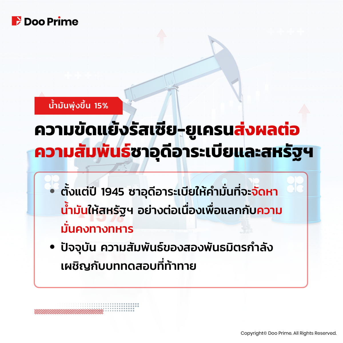 กล่าวโดยสรุป การพุ่งขึ้นของราคาน้ำมันเมื่อเร็วๆ นี้ถือเป็นสัญญาณของการเปลี่ยนแปลงภูมิรัฐศาสตร์และอัตราเงินเฟ้อที่อาจจะสูงขึ้นในอีกไม่กี่เดือนข้างหน้า สหรัฐฯ และซาอุดิอาระเบียกำลังเผชิญกับบททดสอบในเชิงพันธมิตร และเฟดก็อยู่ในจุดที่ยากลำบากในขณะที่พยายามรักษาสมดุลระหว่างการขึ้นอัตราดอกเบี้ยเพื่อต่อสู้กับอัตราเงินเฟ้อกับความเสี่ยงที่จะทำให้เกิดภาวะเศรษฐกิจถดถอย นักลงทุนควรคำนึงถึงความเสี่ยงที่อาจเกิดขึ้นและความผันผวนในตลาดน้ำมัน แต่ก็มีโอกาสที่จะทำกำไรจากสถานการณ์ปัจจุบันได้เช่นกัน
