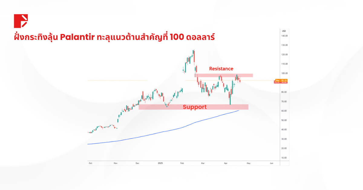 ล่าสุด Palantir เคลื่อนไหวอยู่ในกรอบแนวรับที่ 60 ดอลลาร์ และแนวต้านที่ 100 ดอลลาร์ ฝั่งกระทิงกำลังรอให้ราคาทะลุ 100 ดอลลาร์อย่างชัดเจน เพื่อดันไปสู่จุดสูงสุดใหม่