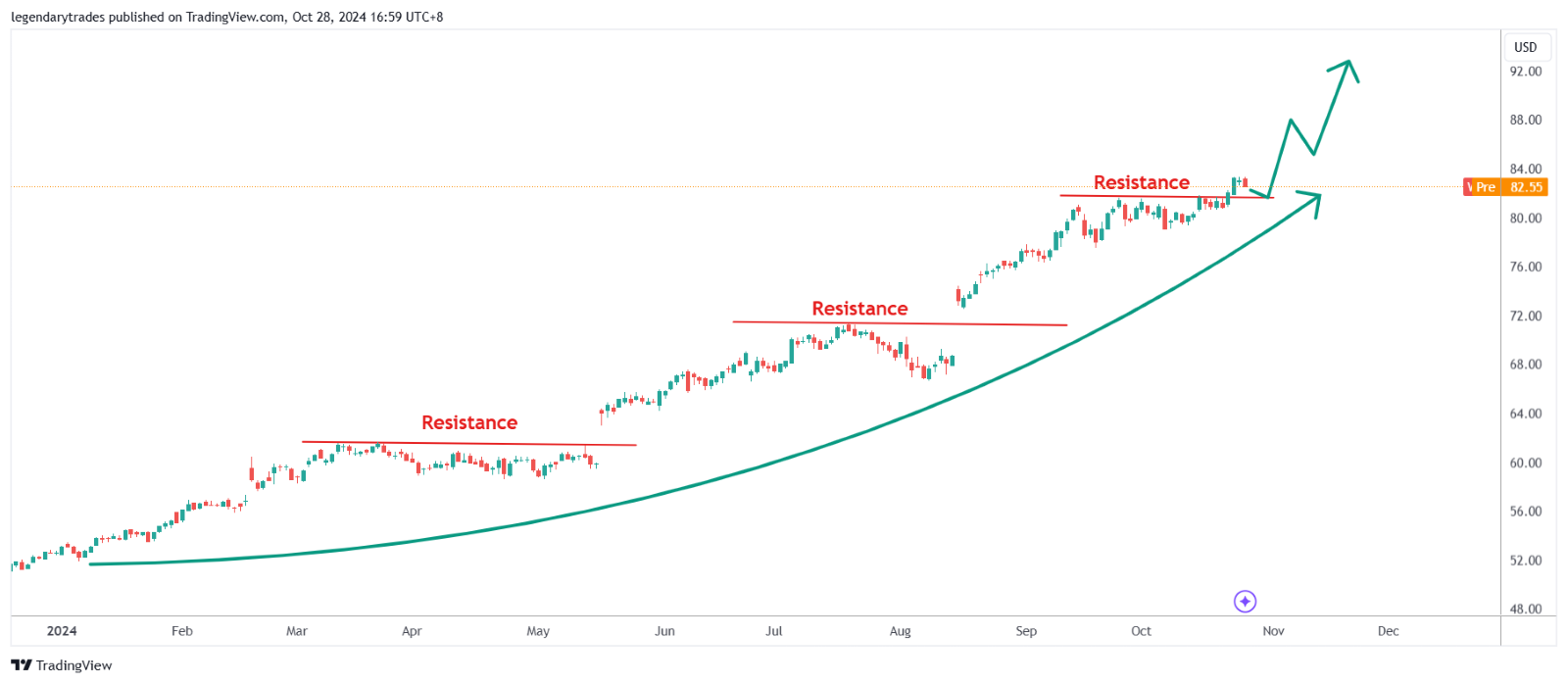 จากมุมมองทางเทคนิค ราคาหุ้น COST ขณะนี้อยู่ในแนวโน้มขาขึ้นที่แข็งแกร่ง โดยมีความคาดหวังว่าจะยังคงมีแนวโน้มเช่นนี้ต่อไป ด้วยการใช้จ่ายในวันฮัลโลวีนที่เพิ่มขึ้นและฤดูกาลวันหยุดที่มีแนวโน้มดี หุ้นอาจสามารถทำลายระดับ 1,000 ดอลลาร์ได้ภายในสิ้นปี 2567