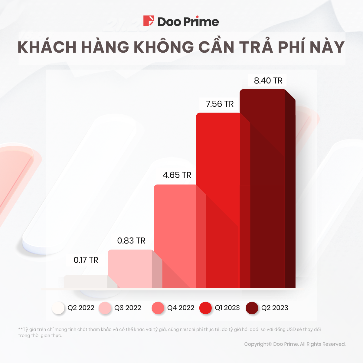 Chiến Dịch Miễn Phí Swap của chúng tôi chính thức khởi động với kết quả tích cực trong Quý 2 năm 2022, khi giúp quý nhà giao dịch tiết kiệm được 0.17 triệu USD phí Swap. Tiếp đến trong Quý 3, mức tăng trưởng đáng kể trong số lượng giao dịch giúp chi phí được miễn lên đến 0.83 triệu USD. Tuy nhiên, mức “đỉnh” của chiến dịch được ghi nhận trong Quý 4 năm 2023, khi cộng đồng giao dịch tại Doo Prime tiết kiệm được 4.66 triệu USD chi phí lãi suất qua đêm.