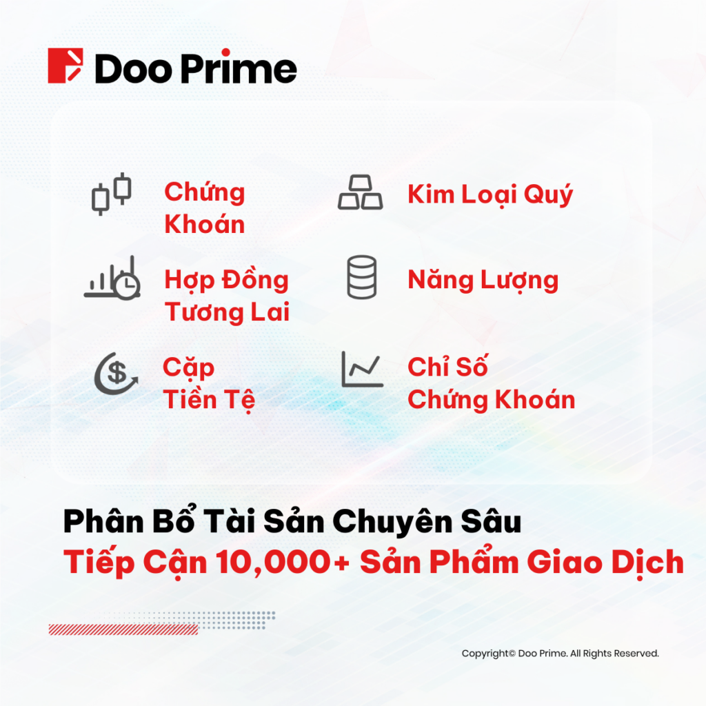 Thông tin này được gửi đến công chúng với mục đích duy nhất là cung cấp thông tin và không nên được xem là lời khuyên đầu tư, khuyến nghị, đề nghị hoặc sự chào mời mua hoặc bán bất kỳ công cụ tài chính nào. Thông tin hiển thị tại đây được chuẩn bị mà không có sự tham khảo hoặc cân nhắc đến bất kỳ mục tiêu đầu tư hoặc tình hình tài chính của cá nhân nào. Bất kỳ sự so sánh, tham khảo nào đối với hoạt động của một công cụ tài chính trong quá khứ hay chỉ số, hoặc một sản phẩm đầu tư sẽ không được xem là một chỉ số đáng tin cậy cho thấy kết quả trong tương lai của loại sản phẩm tài chính tương ứng. Doo Prime và công ty mẹ, các chi nhánh, công ty con, công ty liên kết, đối tác và nhân viên tương ứng, không đại diện hoặc đảm bảo đối với thông tin được hiển thị và sẽ không chịu trách nhiệm đối với bất kỳ tổn thất hoặc thiệt hại trực tiếp, gián tiếp, đặc biệt hoặc các hậu quả nào phát sinh từ bất kỳ thông tin không chính xác hoặc không đầy đủ nào được cung cấp và mọi rủi ro giao dịch trực tiếp hoặc gián tiếp, lãi hoặc lỗ phát sinh từ khoản đầu tư của bất kỳ cá nhân hoặc khách hàng nào.